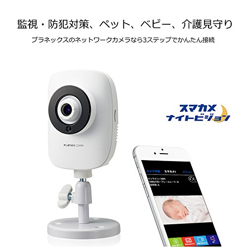 PLANEX ネットワークカメラ スマカメナイトビジョン Google Home/Amazon Alexa対応 暗視機能・マイク内蔵・モバイルルーター対応・合法カメラ CS-QR20