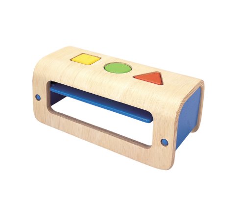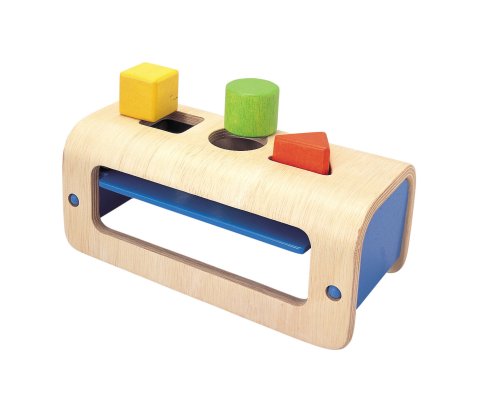 ●セールスポイント:3色の異なる形のブロックをはめ込む遊び。この遊びを通して手と目の協同、手先の運動、色や形の見分けなど、多くの能力が養われる。子どもは何度でも飽きずにチャレンジするが、トレイを下に押すだけでブロックを簡単に取り出せる機構になっている