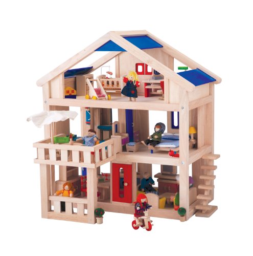 Plan Toys create to inspire children's imagination as well as promote their physical and intellectual development.Plan Toys also proves that it is possible to maintain superior quality standards while steadfastly following a path of environmental and social responsibility.Plan Toys practises the "Three R's" of green living: Reduce, Reuse, and Recycle.Plan Toys manufacturing processes is designed to reduce waste and save energy.Plan Toys are always looking for new ways to improve and preserve our environment.They create innovative educational toys for every developmental stage of childhood.Plan Toys incorporates thoughtful design and age-appropriate challenges to stimulate children's creativity.This Dollhouse features movable terrace, partitions, windows, door and staircase.There is a large attic space under the roof (Furniture and dolls not included).Stories will easily arise and help children understand the roles and relationships in the family, it also enhances social skills in group play.