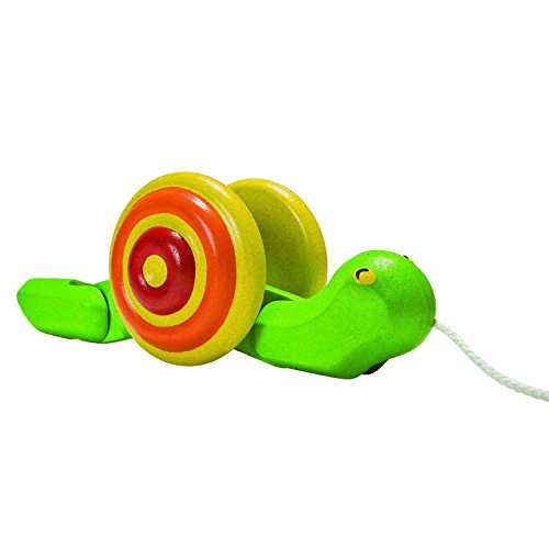 Encourage those beginning stages of walking with this adorable pull-toy. This beautifully finished wooden snail has a green body and yellow, orange and red shell, making him stand out! Pull the snail along and the snail body inches forward in a rolling motion so it looks like the real thing. Made from high quality wood this item is extremely durable and easy to clean. For more than 30 years, PlanToys has been consistently developing its products and activities with a strong commitment that a company could ever made to contribute positively to the world. From the best-practice and beyond with innovation and creativity in toys process and design, PlanToys is not only well-known for the first company in the world to manufacture wooden toys from preservative-free rubberwood, it is one of the leading company to create new material and process to minimize waste up to zero.