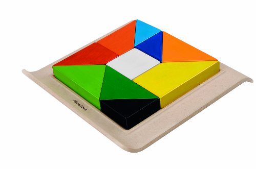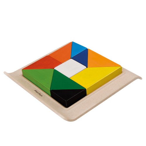 ツイストパズルはツイスト=ひねることができます。ひねって変形できるんです。ブロックパーツは6個。二つの形状が接続されていて、ひねって変形できるパーツと、単品のパーツで構成されています。カラフルな形違いのブロックを自由にひねったりまわしたりして、自分だけの模様を完成させましょう。トレイは両面が使えて、片面は正方形の枠。反対側は家のような枠。ここにブロックパーツを組み合わせて、時にツイスト(変形)しながら、当てはめます。枠にはまりたくない!というお子様には、付属の説明書を見ながらパターンを作るなどタングラムとしても楽しめますヨ。