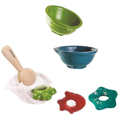 Go fishing' with your wooden toy Landing Net! The set includes a landing net, a fish, a turtle, a starfish and 2 different cups. Kids will enjoy experimenting different flows of water with these 2 cups. Some are pierced and kids can enjoy dumping, filling, reversing, the possibilities are endless. Made in PlanWood. For more than 30 years, PlanToys has been consistently developing its products and activities with a strong commitment to contribute positively to the world. By implementing best practices and taking innovation of toy-making and design to the next level, PlanToys is not only known as being the first company to manufacture wooden toys from preservative-free rubber wood, we are a leading company that has created a new material and process as part of our zero waste goals. Continuing our commitment for a sustainable future, PlanToys has introduced PlanWood as another high quality, safe, and sustainable material in our toy-making process. This material will be used in harmony with our solid rubber wood. PlanWood is an eco-friendly material because the waste is minimized and fewer trees are reclaimed. The less energy, used to produce PlanWood ultimately reduces our environmental impact. PlanToys values have been rooted from embracing Mother Nature. The company has grown their green values into values of Sustainable Play. Sustainable Play is the foundation of how our toys cultivate creative minds and bring children closer to nature.