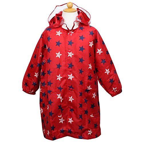 - ロゴ入りと配色の星柄プリントがポップなレインコート、 背中にはマチがありリュックをしょったままでも大丈夫♪