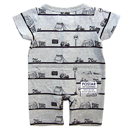 (ポスター) POSTAR アウトドア総柄ロンパース 杢グレー 80cm