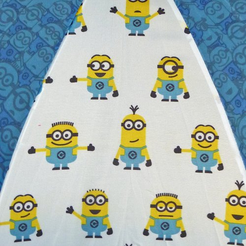 ブルーの生地に黄色いミニオンたちのプリントがかわいい!