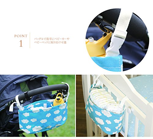 ・バッグルで簡単にベビーカーやベビーベッドに取り付け可能。