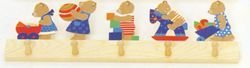 ドイツ・ヘラー社の子供用コートラック。かわいいクマたちが出迎えてくれるので、お子様も進んで自分の服を片付けてくれます。同じヘラー社のハンガーとおそろいで使うと、より一層かわいらしさが引き立ちます。裏面に取り付け穴が2ヶ所空いていますので、金具やフック等で固定してご使用ください。取り付け金具はございません。