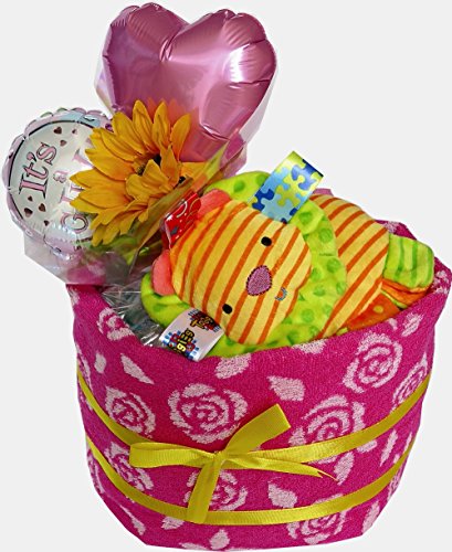 おむつ・おしりふきケーキ 1段セット【お急ぎ可能】 出産祝い・ギフトに大人気です!! ・おむつをくるんでいるとても上品なローズタオルが2種類(ピンク・ライトピンク)あります。 ・ブライトスターツ タギーズ 音がなり、赤ちゃんのすきなタグが沢山ついてます。 赤ちゃんの成長のサポートにピッタリの商品です。 おむつケーキ1段と小さめなため、持参することもできます。