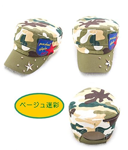 子供用キャップ アーミー風ワッペン カモフラージュ 星形リベット付迷彩柄帽子 ベビー&キッズ (ベージュ迷彩)