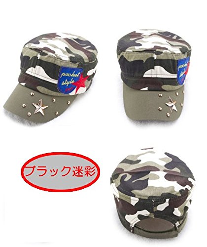 子供用キャップ アーミー風ワッペン カモフラージュ 星形リベット付迷彩柄帽子 ベビー&キッズ (ブラック迷彩)