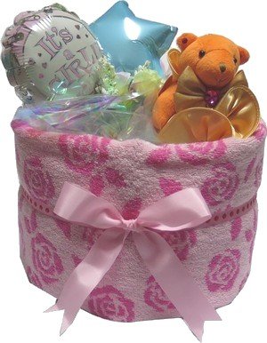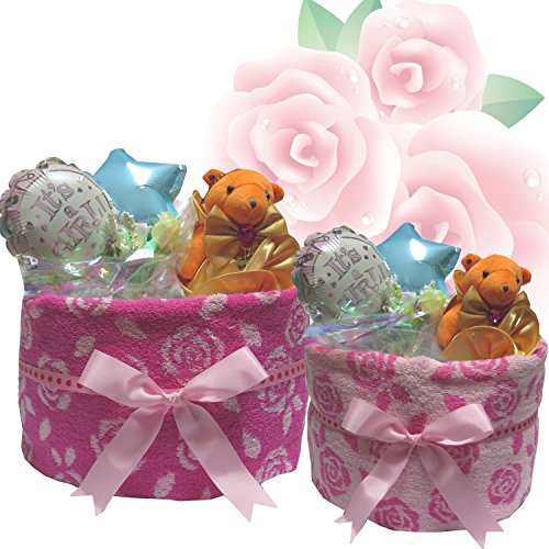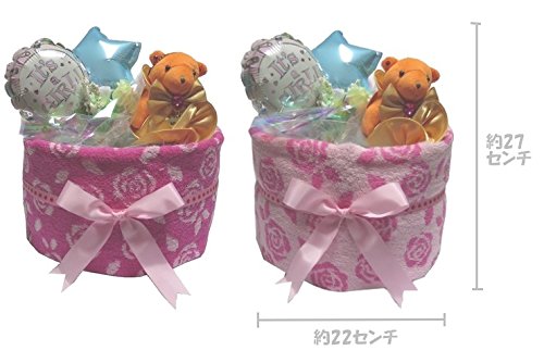 おむつ・おしりふきケーキ 1段セット【お急ぎ可能】 出産祝い・ギフトに大人気です!! ・おむつをくるんでいるとても上品なローズタオルが2種類(ピンク・ライトピンク)あります。 ・KITSON キットソンのベアーシュシュつき ママの為にシュシュ、赤ちゃんの為にくまのぬいぐるみ。 おむつケーキ1段と小さめなため、持参することもできます。
