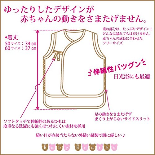 赤ちゃんの肌は、とてもデリケート!! 厳選した素材赤ちゃんの動きを妨げないデザインで赤ちゃんの気持ちになって考えた肌着です。 優しさいっぱいの肌着で毎日快適に過ごせますよ♪ 無蛍光綿100%の袖なし短肌着です♪ ・ゆったりしたデザインが、赤ちゃんの動きを妨げません。 ・重ね部分をたっぷりとる事により赤ちゃんが暴れてもはだけないデザイン!! ・外縫い採用で!!縫い目が直接当たらずお肌に優しい。 ・ほつれにくいソフトタッチで伸縮性のある紐を採用♪ サイズ:50~60 カラー:白 素材:高級綿糸100% 生産国:日本製