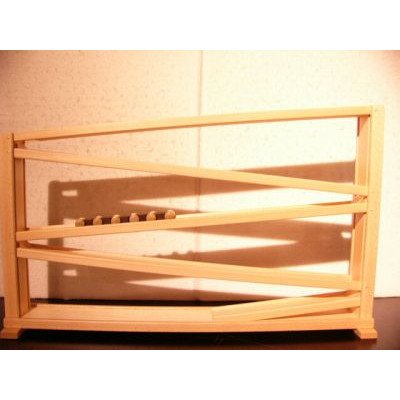 トレインカースロープの大きなバージョン。 通常サイズと並べるとこれだけ違います(2枚目の写真)。 通常サイズと同じく、カー4台と4両トレイン(黒)1台付き。0歳~ サイズ 59x36x8.5cm メーカー ベック社(ドイツ) 材質 木製