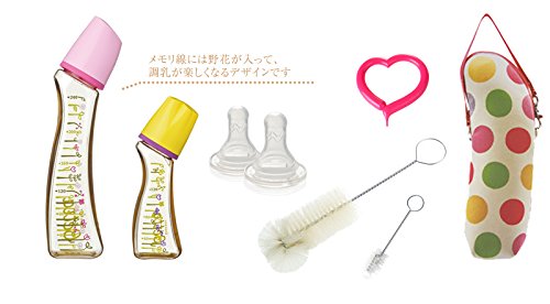・メモリ線には野花が入って、調乳が楽しくなるデザインです。