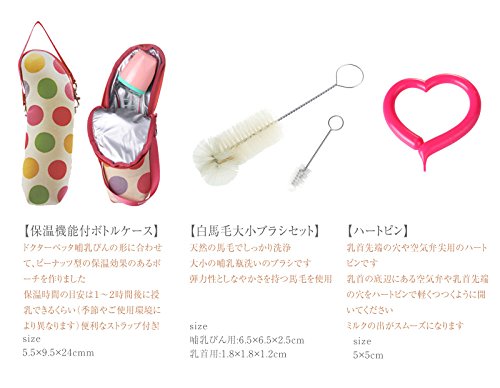 セット内容:哺乳瓶120ml・240ml、専用ブラシセット、ブレイン替乳首(クロスカット)、保温ポーチ、ハートピン