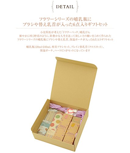 備考:★小児科医が考えた「ドクターベッタ」哺乳びん。鮮やかに咲く野花のように、彩豊かな人生を送って欲しいとの願いをこめて作られたフラワーシリーズの哺乳瓶にブラシや替え乳首が入った5点入りギフトセット。
