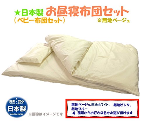 【日本製】お昼寝布団セット(ベビー布団セット)掛・敷・枕・カバー3点の6点セット (無地ベージュ)