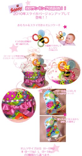 出産祝に大人気のオムツケーキのブランド「ベビーアルテのオムツケーキ」にサッシーの歯固めおもちゃやスタイが付いてさらに可愛くて実用性アップのギフトです。 おむつを使った後もオモチャやスタイが残るので2度うれしい♪ 出産のプレゼントに何か変わったものを驚かせたい方に超オススメです。