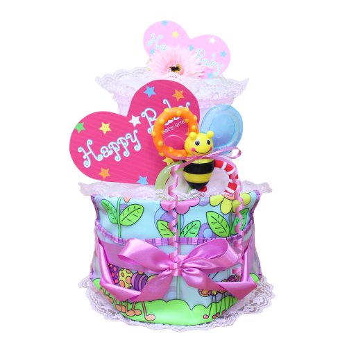 お客様より「オムツケーキに付いているハートのカードにメッセージが入るのでオリジナル感満載でした」・「とっても可愛くお友達も感激してくれました」など感激の感想を多数頂いております。 ベビーアルテのオムツケーキはクリームをイメージさせるために高級レースなどを使いケーキであることと高級感を大切に製作しております。