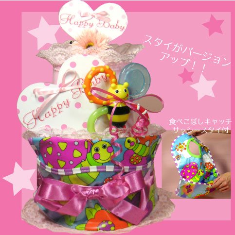 【ベビーアルテ】Sassy(サッシー) ビブスタイ&ビブ歯がため付 ハッピービブ2段オムツケーキ