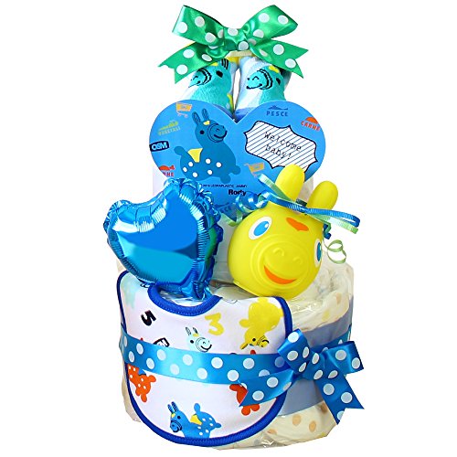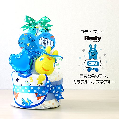 ベビーアルテ Rody ロディ OSM スタイ ぺちゃ付き 2段 おむつケーキ 【おむつ:パンパースSサイズ】ブルー