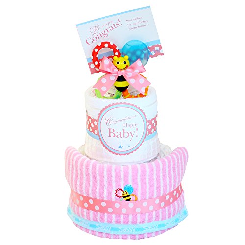 ベビーアルテ おむつケーキ Sassy ( サッシー) ベビーパーティー2段 おむつケーキ 【おむつ:パンパースSサイズ】 【カラー:ピンク】 今治 タオル 歯固め