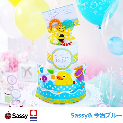 おむつケーキ Sassy ( サッシー) 今治 タオル ベビーパーティ2段 おむつケーキ【おむつサイズ:M(おむつ種類:パンパース) おむつケーキカラー:今治ブルー】出産祝い