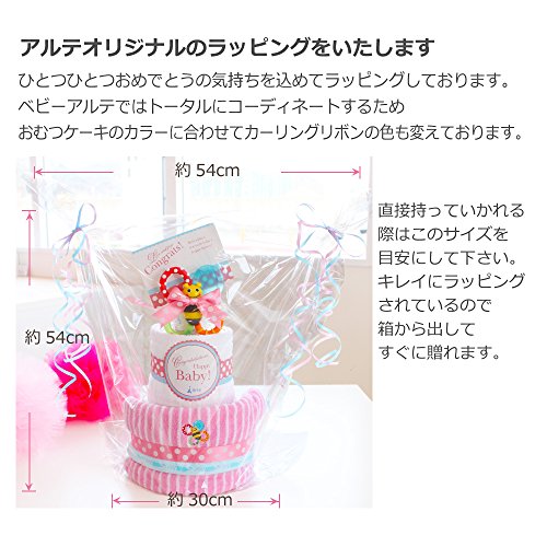 - 衛生的おむつ個包装:当店ではすべての紙おむつを1枚づつ袋に入れ個包装にしておむつケーキを作成しております。