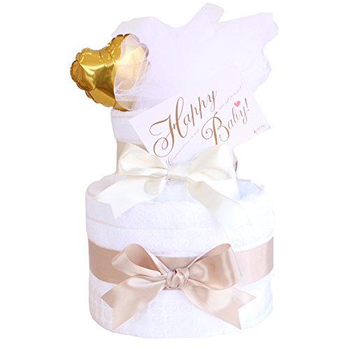 ベビーアルテ 今治 バスタオル付き 2段 おむつケーキ 【おむつ:パンパースSサイズ】ホワイト×ブラウン