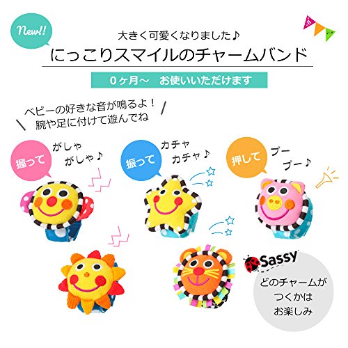 - おもちゃはサッシーの「ピンキー・ピッグ・ラトル」歯固め、「チャームバンド」付き。※チャームバンドの種類はお選び頂けません。