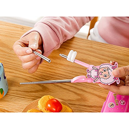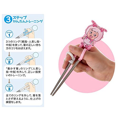 3つのリングで正しい持ち方と動かし方のコツを覚え、次に「動かす箸」のリングを外して指使いの練習をし、最後はリングを全て外して箸を落さず使う仕上げの練習。