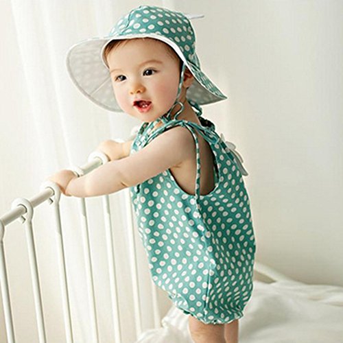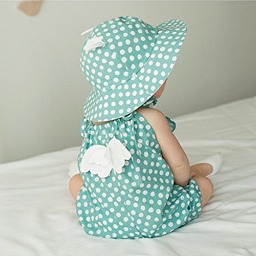 ベビーカバーオール ベビーセット 赤ちゃん服 ロンパース 可愛いドット柄 帽子別売 グリーン 100
