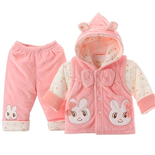 (ベビーゴー)babygo ベビー服 肌着 新生児 冬 防寒 ベスト&長袖シャツ&パンツ 3点セット 出産祝い レッド 66