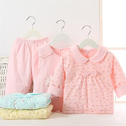 (ベビーゴー)babygo 新生児服 赤ちゃん 冬防寒服 ベビー肌着 3点セット ピンク 73
