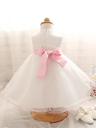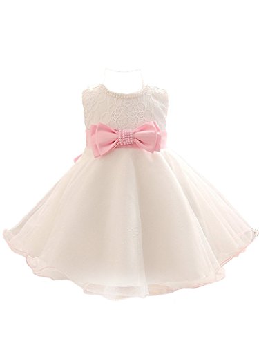 ベビーゴー キッズドレス ノースリーブ 子供ドレス ワンピース ガールズワンピース フォーマル ドレス ビーズ付き リポン付き 発表会 結婚式 入園式 文化祭 演奏会 70-90 ホワイト