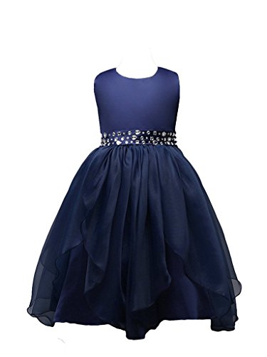 ベビーゴー キッズドレス ノースリーブ 子供ドレス ワンピース ガールズワンピース フォーマル ドレス 発表会 結婚式 入園式 文化祭 演奏会 無地 130-160 ネイビー ネイビー レッド ローズ 4色(ネイビー 140)