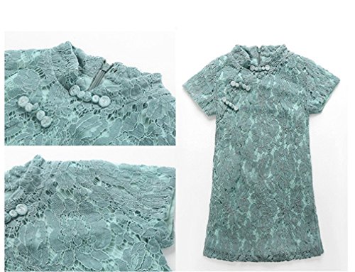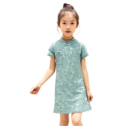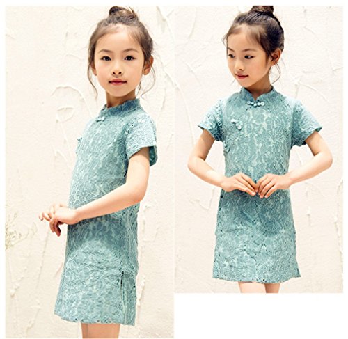 ベビーゴー クラシック 中国風 子供チャイナドレス キッズドレス レースワンピース(青 110)
