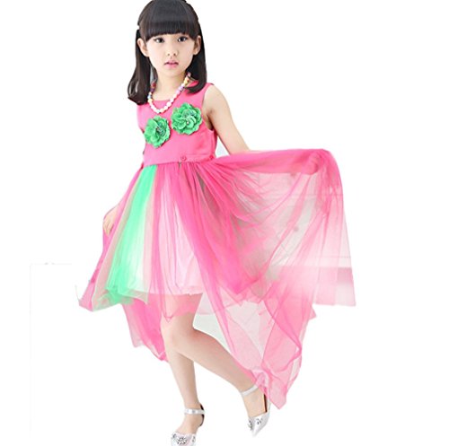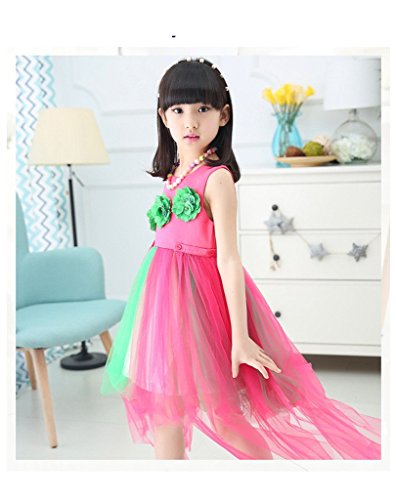 ベビーゴー 子供ドレス ワンピース ワンピース 胸に3D花付き 踊りワンピース ドレス 発表会 文化祭 演奏会(ローズ 160)