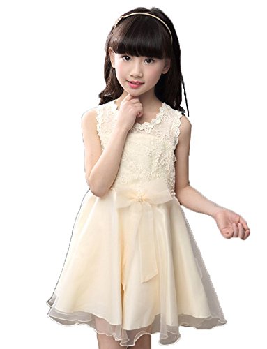 ベビーゴー 子供ドレス キッズ 女児 ガールズワンピース リボン飾り 発表会 結婚式 入園式 文化祭 演奏会 花嫁介添人 パーティー ベビー 子供 ノースリーブ お嬢様 ドレス フォーマル (ライトイエロー 160)