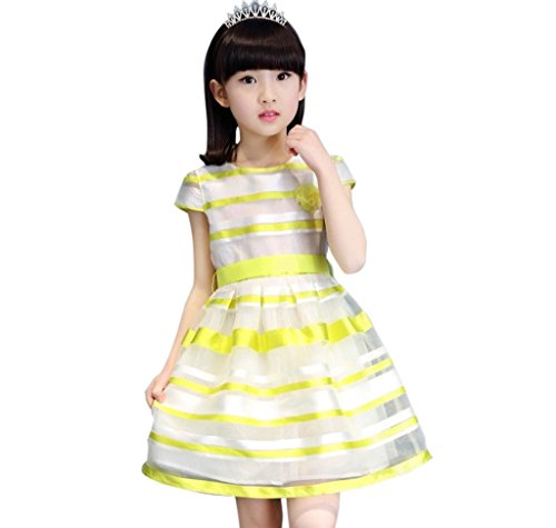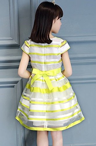 ベビーゴー ワンピース 子供 ワンピース ストライプ 子供ワンピース ピアノ発表会 キッズワンピース フラワーガール 女児 ガールズ フォーマル リポン付き 発表会 結婚式 入園式 演奏会 七五三 卒業式(イエロー 160)