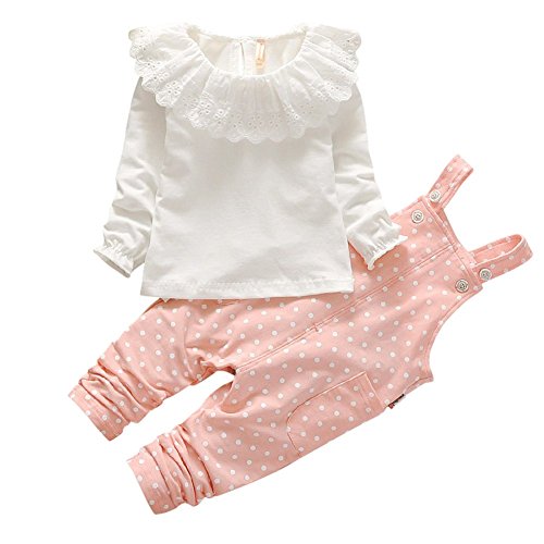 (ベビーゴー)babygo 子供 セットアップ 長袖シャツ&サロペット 赤ちゃん服 女の子 ピンク 90