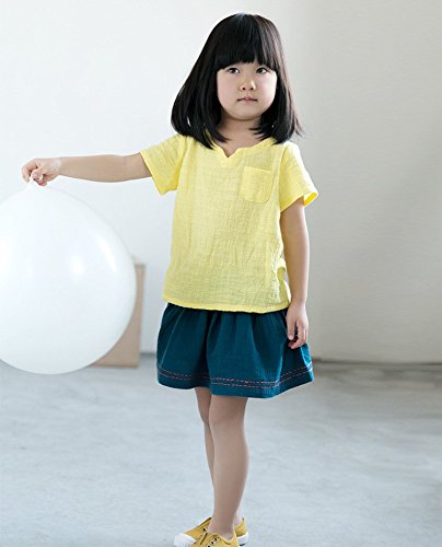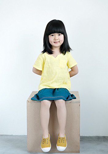 ベビーゴー Vネック キッズ 半袖 Tシャツ 綿麻 (イエロー 130)