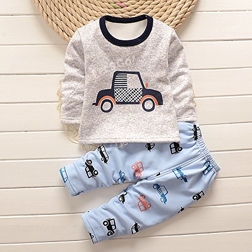 (ベビーゴー)babygo子供服 春秋 キッズ ジュニア 女の子 男の子 スウェット 上下2点セット クルマ・グレー 100