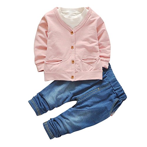 (ベビーゴー)babygo 子供 セットアップ 長袖シャツ&デニムパンツ ベビー服 長袖 肌着 春秋 ピンク 90