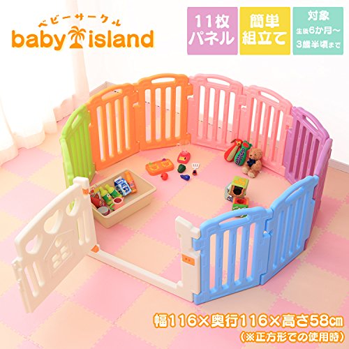 ベビーサークル 11枚パネル ドア付き ロック付き 6ヶ月~3歳半頃対象 ベビーアイランド 88-818