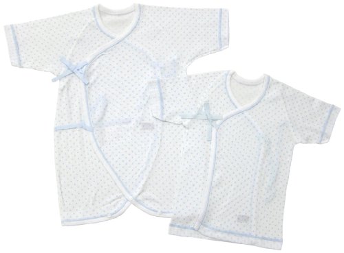 ベビーストーリー メルマ加工 フライス水玉プリント 短肌着&コンビ肌着セット 50-60cm サックス SF14000 日本製