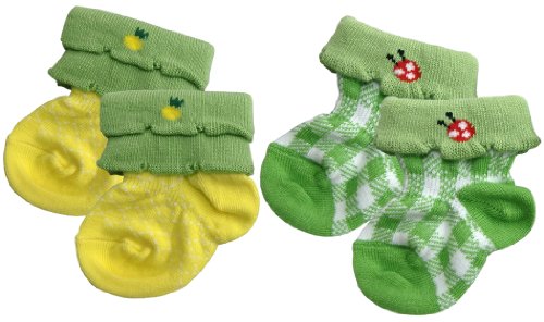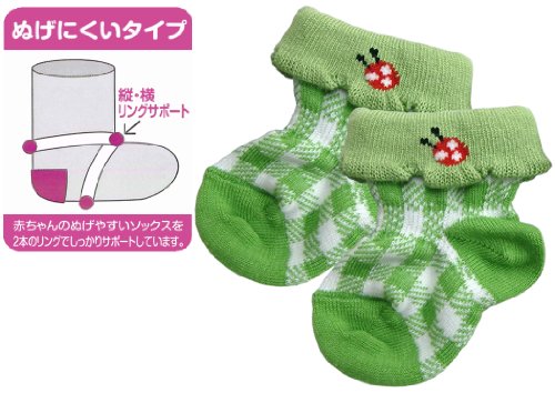 ベビーストーリー 2足組 パイン&てんとう虫 新生児ソックス グリーン 7-9cm 1131-29 脱げにくい仕様 日本製