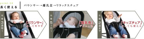 ■世界中のママから支持された「ベビービョルン ベビーシッター」から、より進化した新型モデル『ベビーシッター バランス』が登場。スムーズな『リクライニングの調整』、イタズラ防止の『安全弁』、静かな『消音カバー』がついたベビーシッター バランスは赤ちゃんの”特等席”をさらに快適なものにします。 ■ベビーシッター バランスの揺れは、『赤ちゃんの動きで自然に揺れてあやす』というシンプルな作りですが、ベビーが正しい姿勢でママやパパに抱っこされているような”一番心地よい揺れ”を人間工学に基づいて再現したものです。 ■さらに、接合部は「消音カバー」になったため、揺れた時の『ギシギシ』する音を無くし、夜中でも気兼ねなく使えます。 ■リクライニングは3段階式。ずらして角度を調節する独自の機能で、『カチッ』という音がせず、そのまま眠ってしまった赤ちゃんを起こさずに最適なポジションに変更できます。 ■この赤い「安全弁」は大人には簡単にはずせても、ベビーの兄弟には難しいダブルアクション構造になっています。 また、バランスの「股ベルト」は細長いボタンを使用し、ベビーが自分で外せないようになっています。 「滑り止めラバー」は3点で本体をしっかり支え、また床を傷つけず、消音の働きもあります。 ■首がすわる前の生後3週間からおよそ2歳ごろ(体重13kg)までベビーシッター バランスは長い期間使うことができます。 ■■帰省や旅行に便利な、専用のキャリーバッグとのセット商品です。キャリーバッグはベビーシッターバランスの箱に一緒に入れてお届けします。■■