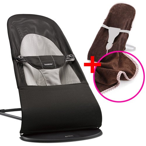 【今治タオルブランケットセットBR】babybjorn(ベビービョルン) バウンサー バランス ソフト メッシュ ブラック (バウンサーソフトタオルカバー ブラウンチェック)