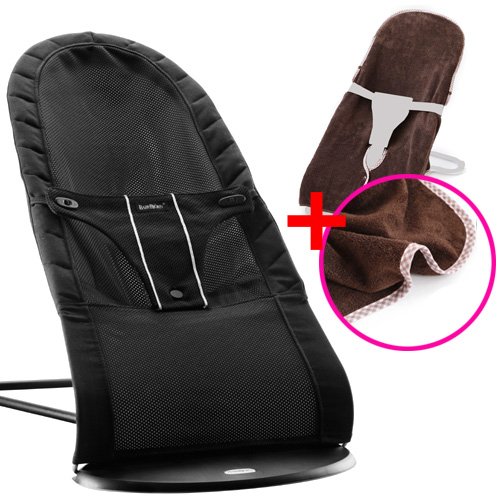 【今治タオルブランケットセットBR】babybjorn(ベビービョルン) ベビーシッターバランス メッシュ(エアー) ブラック (バウンサーソフトタオルカバー ブラウンチェック)
